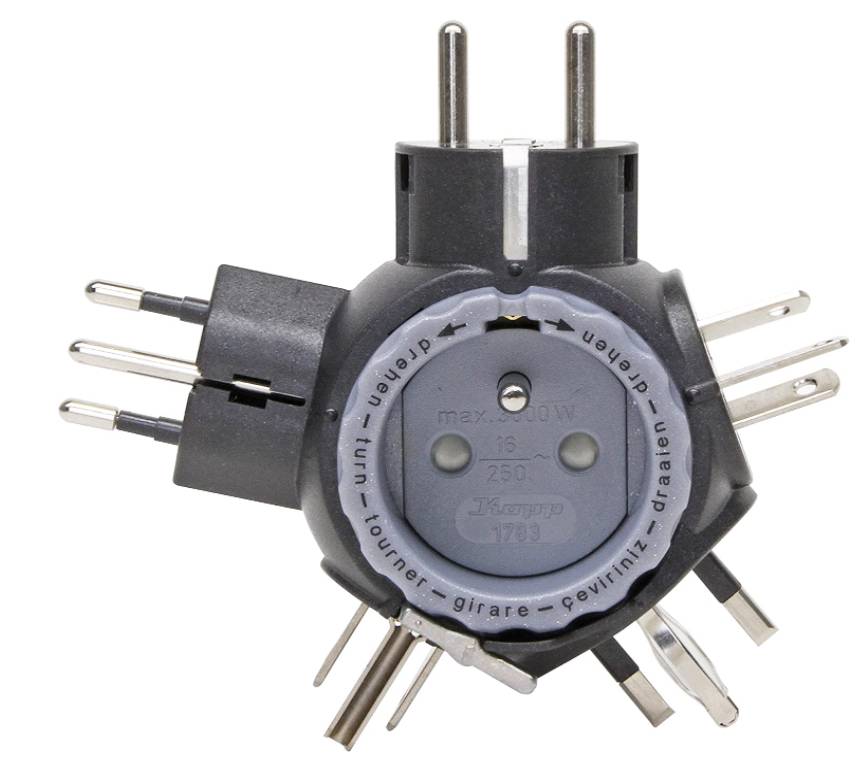 Cestovní adapter 230V pro zahraničí, slouží pro připojení elektrospotřebičů se zástrčkami Euro v zahraničí a také pro připojení zahraničních spotřebičů do zásuvky Euro, je použitelný pouze pro spotřebiče, které nepoužívají zemnící vodič a kolík.