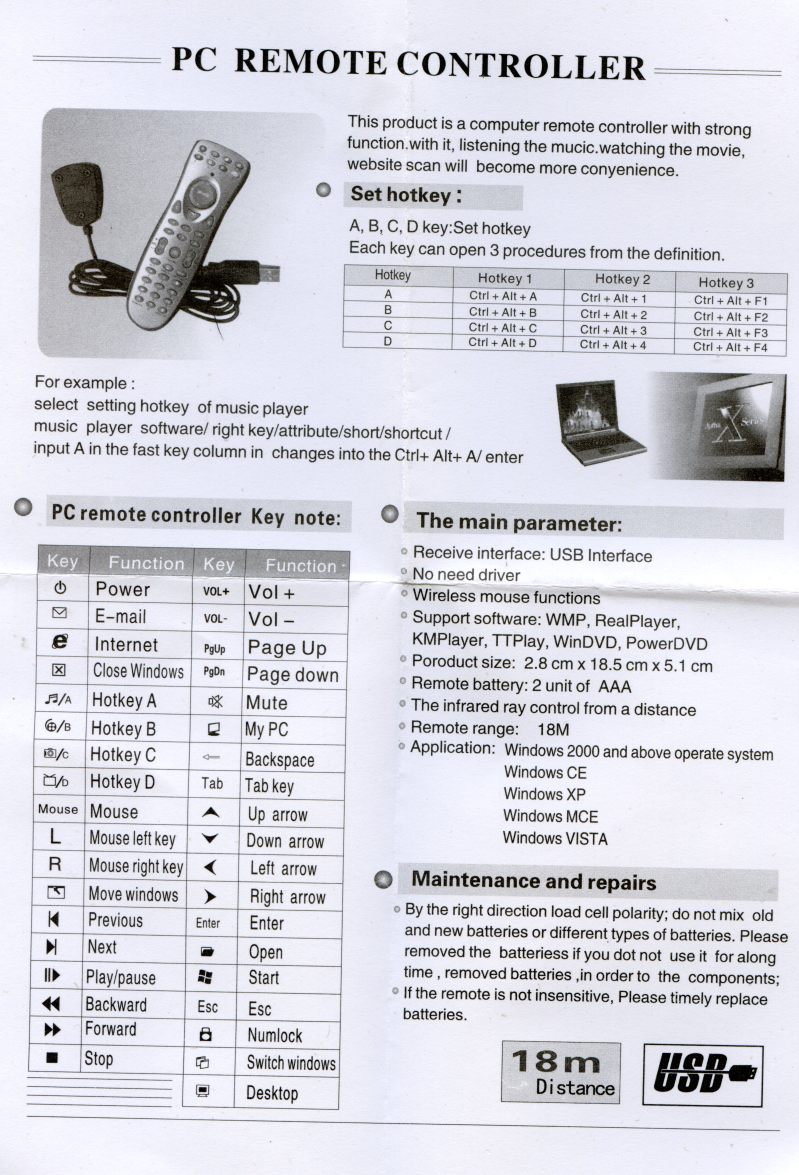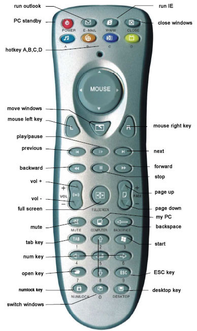 Umožní ovládat Vaše PC a média aplikace pomocí dálkového ovládání z pohovky. Umožní kontrolovat počítač stejně jako myš. Signál má dosah 18m. Nevyžaduje ovladače.