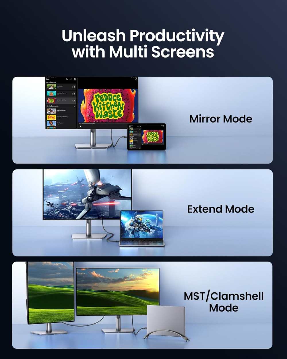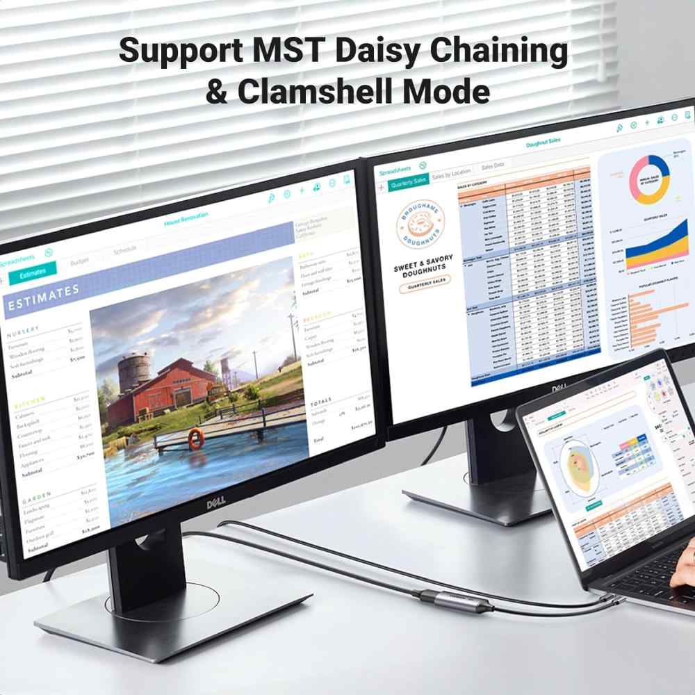 - Funguje s novými zařízeními s USB-C podporujícími DisplayPort Alternate modes