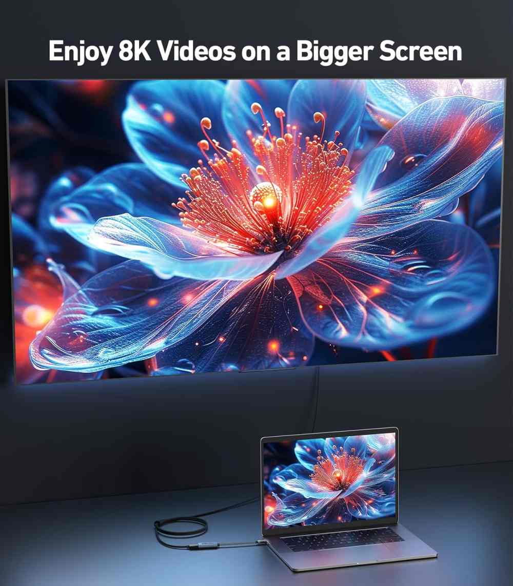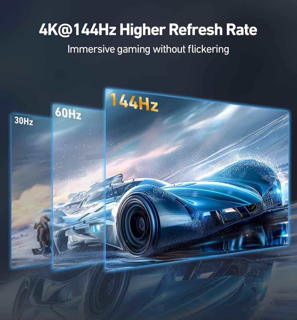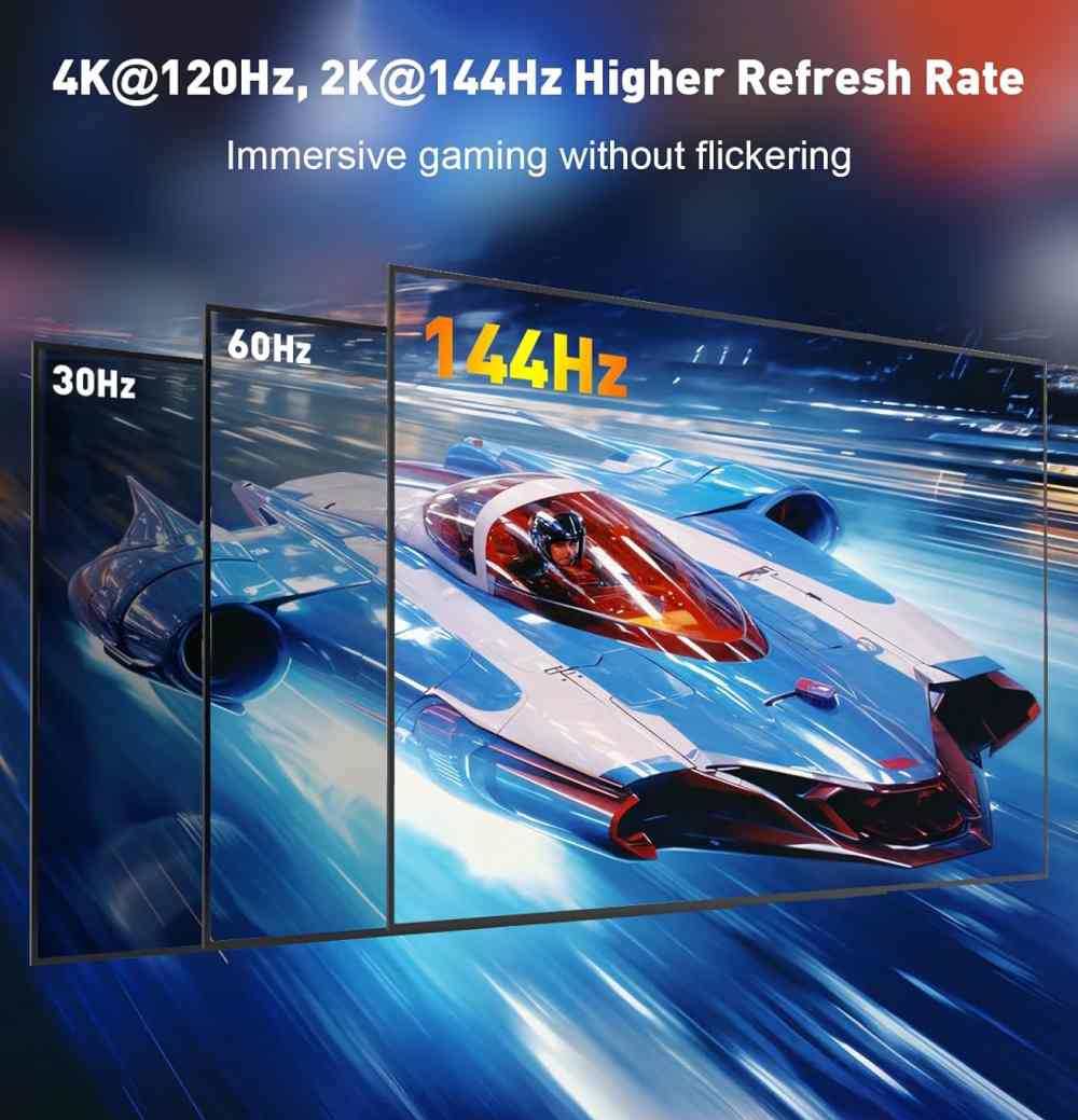 Kabel s nejnovější specifikací DP1.4 přichází, podporuje rozlišení až 8K@60 Hz s HDCP 2.2, umožňuje připojit a zobrazovat na nejnovějších monitorech nebo televizorech v rozlišení ultra HD 8K@60Hz