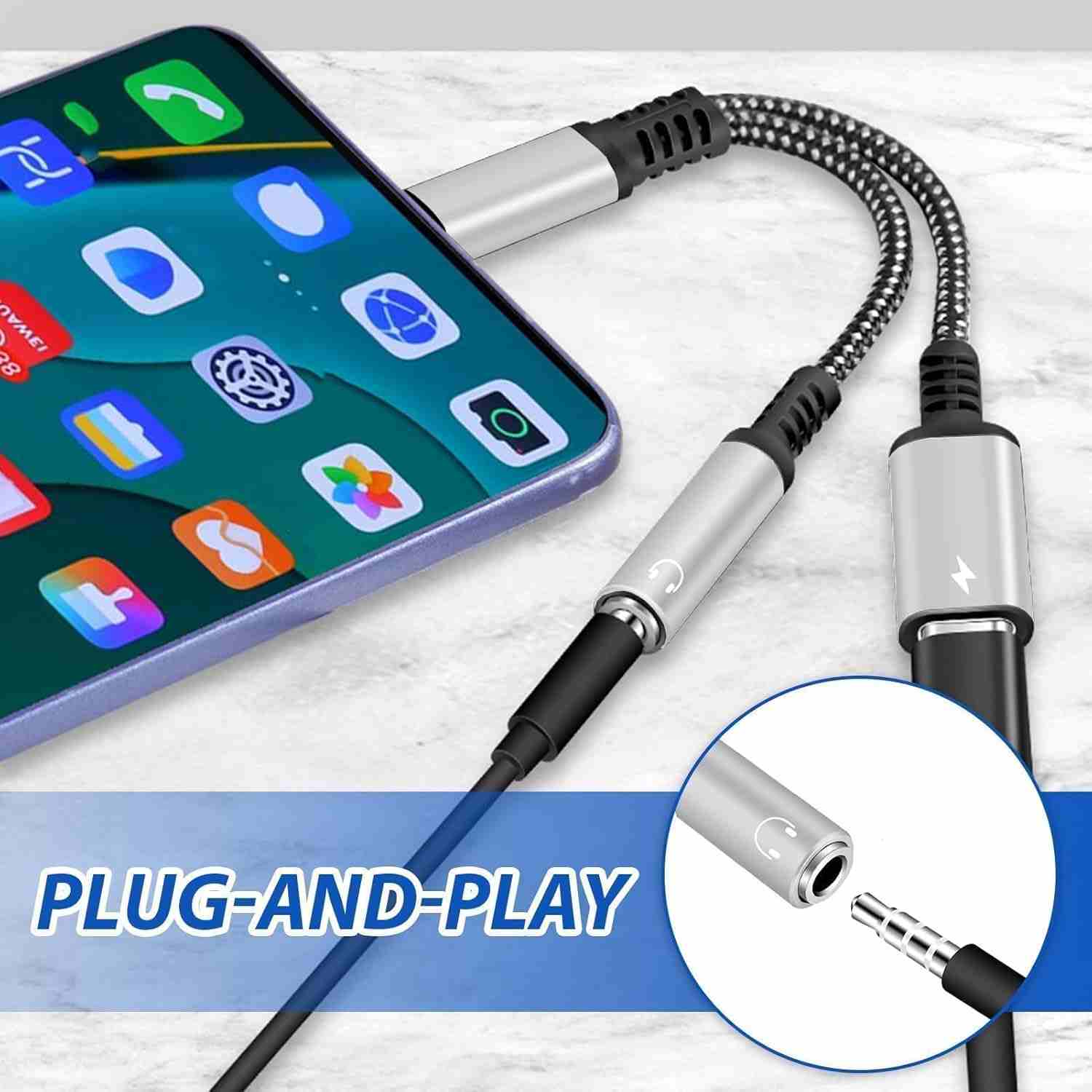 - Umožňuje připojení sluchátek s 3,5 mm jack konektorem ke smartphonům s USB-C konektorem a současné nabíjení telefonu přes USB-C