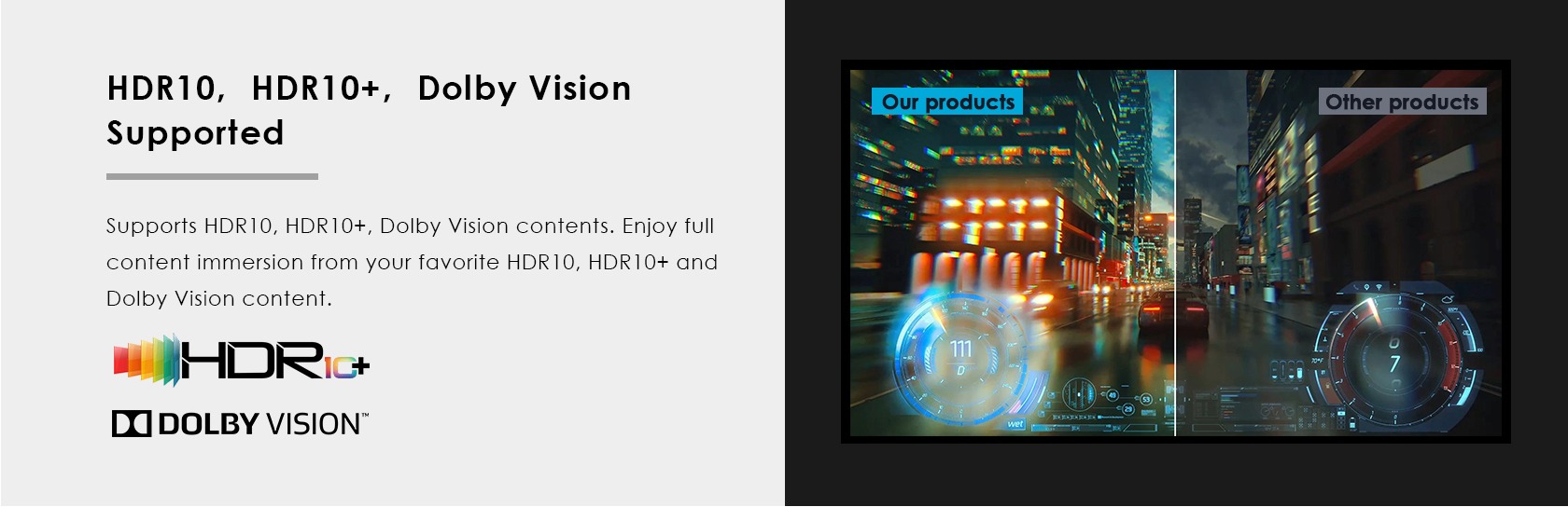 - Podporuje HDR a HDR+, High Dynamic Range (vysoký dynamický rozsah),, HDR 10+, Dolby Vision, Free Sync, G-Sync