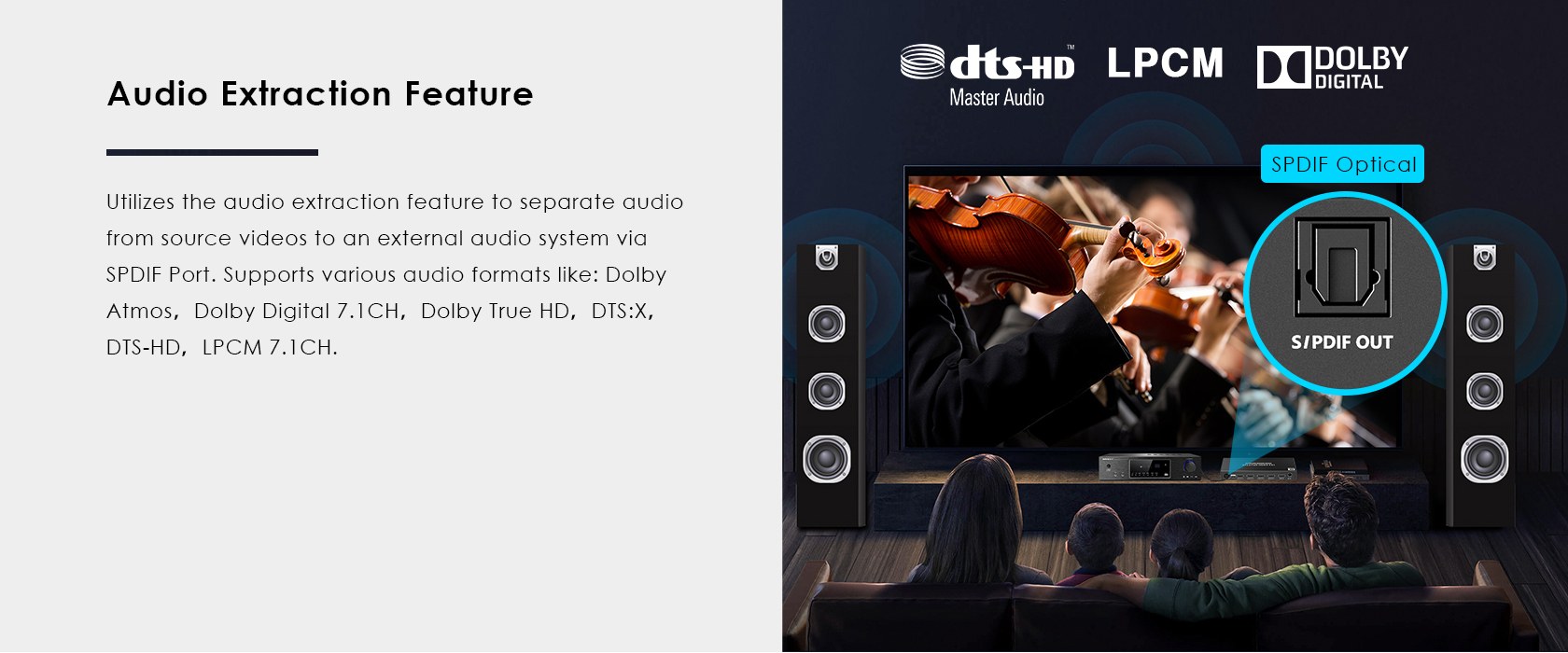 - Podpora audia a DSD (Direct Stream Digital) a HD (HBR) audio