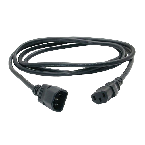 Napájecí kabel v černém provedení pro počítač nebo monitor. Třížilový kabel je zakončený standardní přístrojovou zástrčkou.