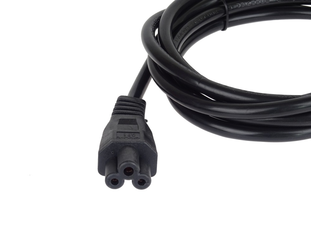 Napájecí kabel v černém provedení pro notebook. Třížilový kabel je zakončený zástrčkou typu "Mickey mouse" IEC 320 C5, průřez vodiče: 3x0,75mm2, proudové zatížení: max 10A, maximální napětí: 250V, barevné provedení: černé, délka kabelu: 3m