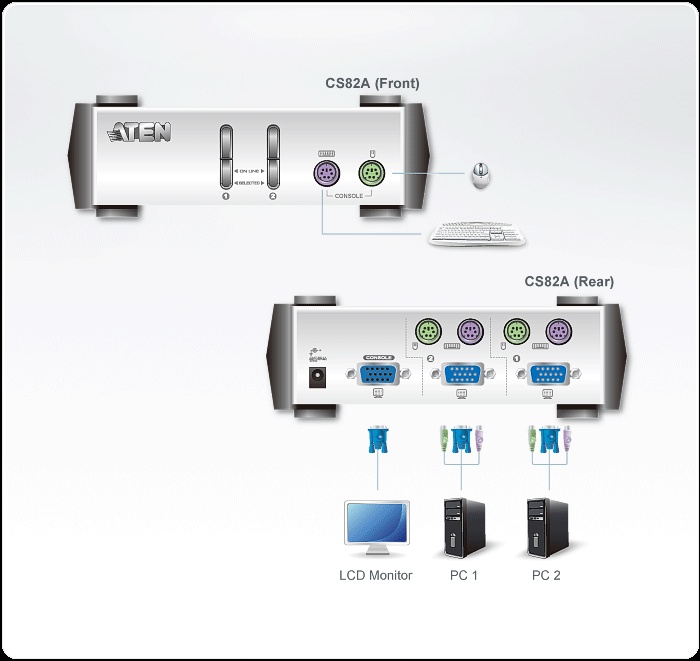 ATEN 2-port KVM PS/2 , 1.2m kabely