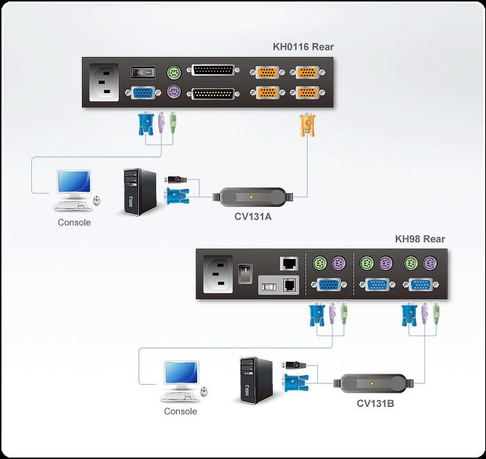 CV131B is a signal converter specifically designed for SUN systems. They can be used with KVM switches. Both models are easy to install and can be configured via the hotkeys on the keyboard.