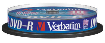 Vysokorychlostní DVD-R média s podporou 16x zápisu, dodávaná v cenově výhodném cakebox balení po 10 kusech. Tradičně kvalitní provedení Verbatim zajišťuje vysokou spolehlivost, dlouhou životnost a perfektní kompatibilitu s vypalovacími mechanikami i stolními DVD+R rekordéry.