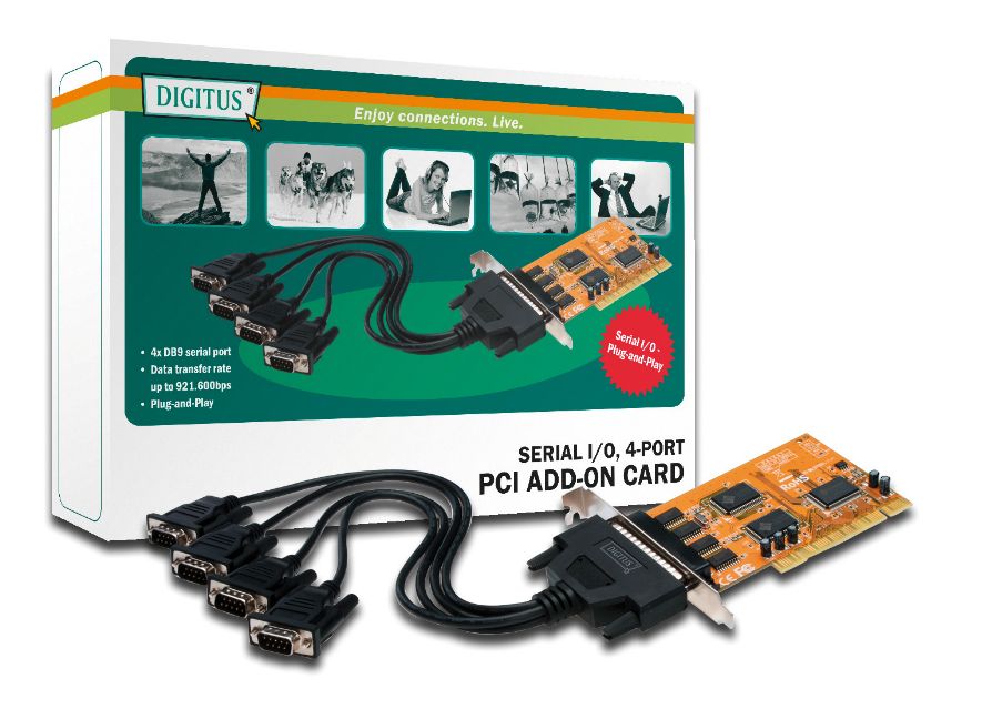 - přidá 4 nezávislé porty RS-232 s rychlostí až 115.2Kbps.
