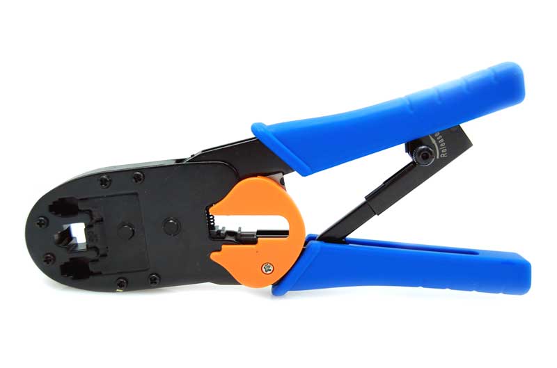 Krimpovací kleště pro upevňování konektorů RJ-11 a RJ-12 na telefonní kabely i pro RJ-45 na síťové kabely.