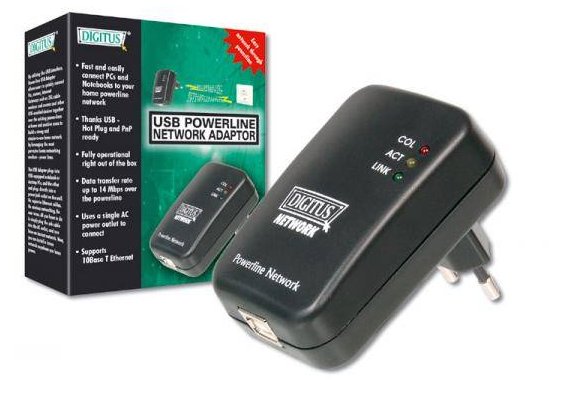 USB Powerline síťový adaptér, který umožní poslat počítačovou síť/internet po běžném rozvodu silových kabelů 230V až na vzdálenost 150m.