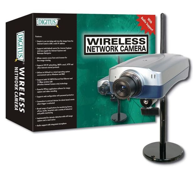 DIGITUS Wireless LAN Internet Camera, JPEG, RJ45 & 802.11GMax. 640 x 480, Frame Rate 3 - 30 fps 4I/O for Digital Alarm