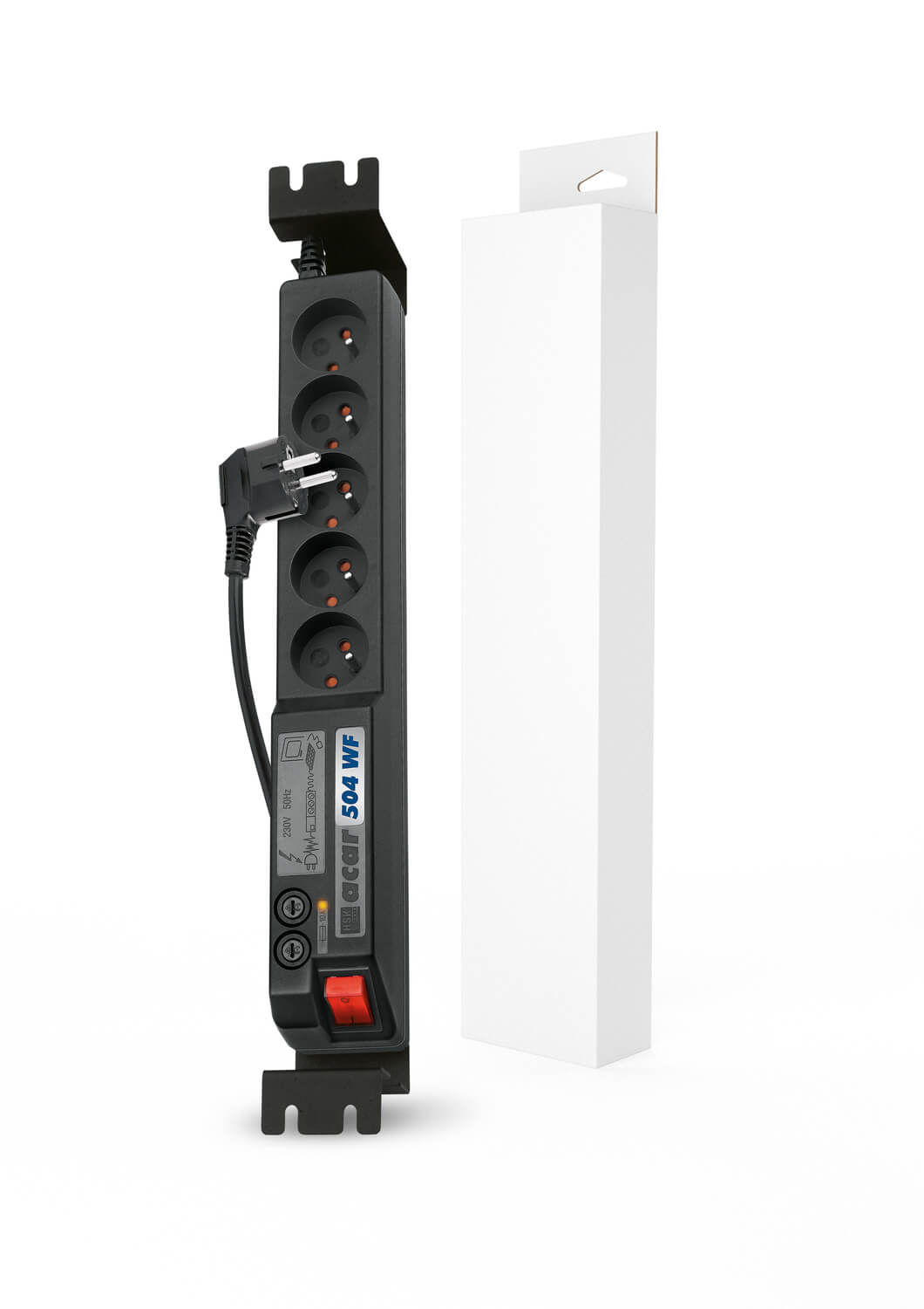 Přepěťová ochrana Acar 504 WF Rack 19" 3m, černá, kovové "uši" pro upevnění do racku 19"