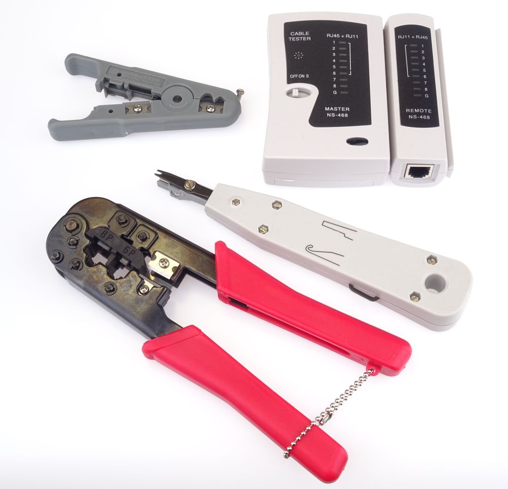 Set nářadí je vhodný pro instalaci nových, diagnostiku a servis stávajících počítačových sítí. Se sadou je možno krimpovat i béžné telefonní konektory RJ11 a RJ12.