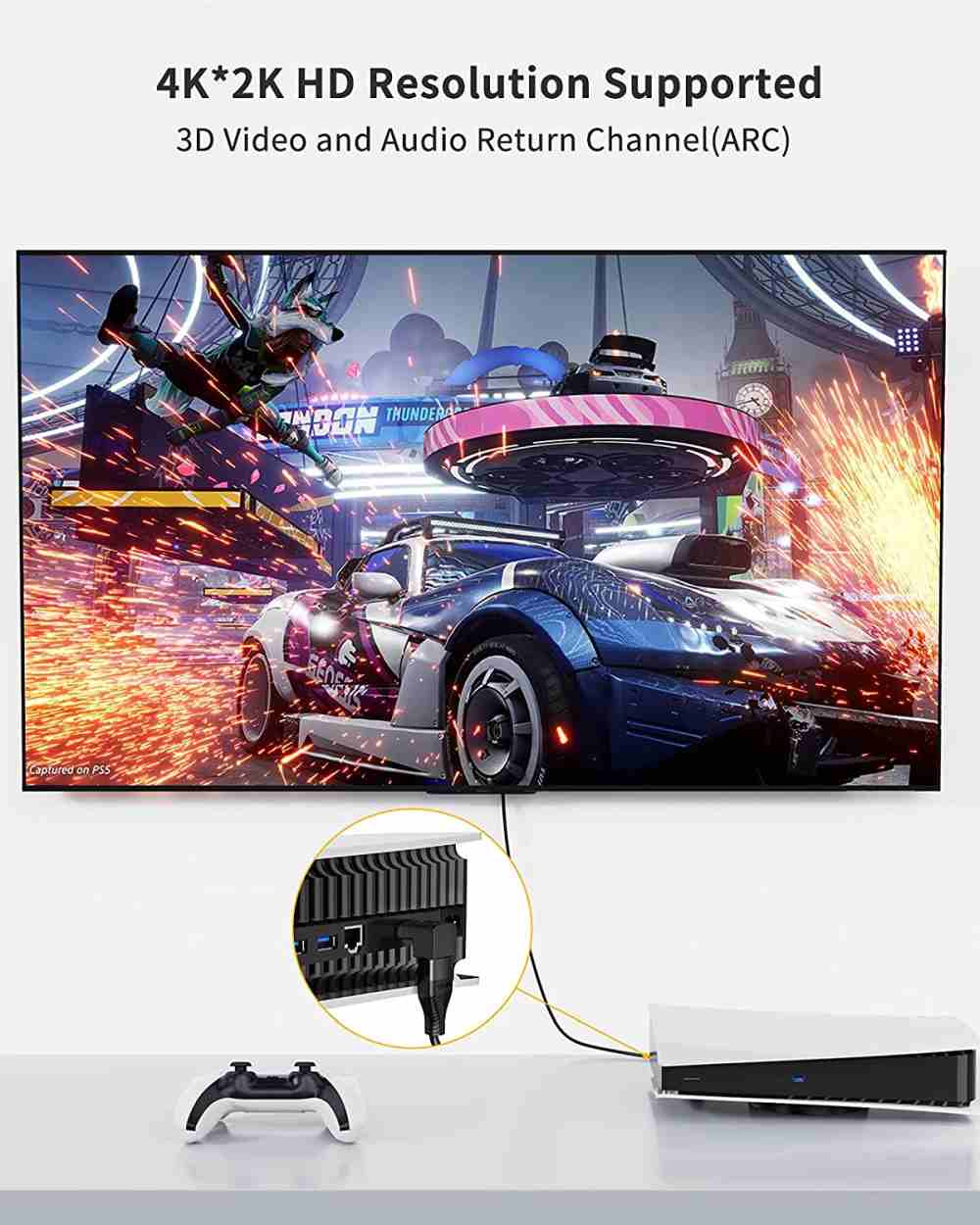 Kvalitní propojovací kabel pro spojení dvou audio/video zařízení přes moderní HDMI rozhraní, jako je např. HD-DVD/BluRay přehrávač a LCD/Plazma televizor. Kabel je stíněný, dokáže přenášet digitální zvuk i obraz, zlacený zahnutý konektor 90° 2m