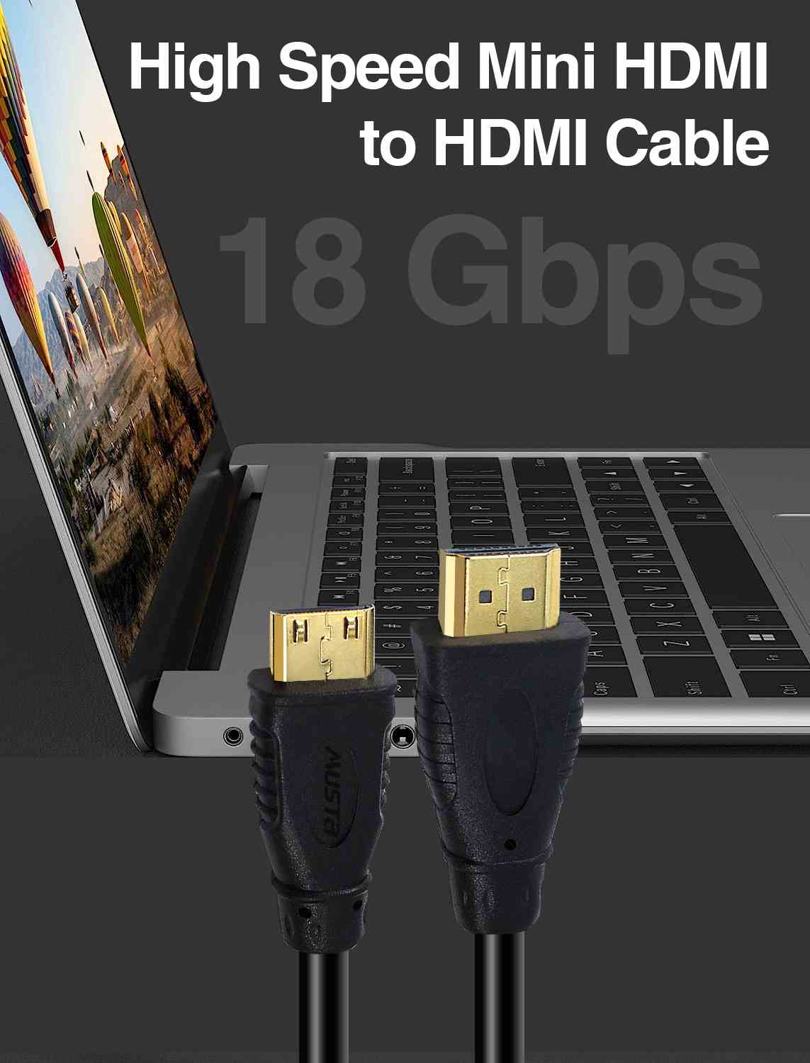 - Pozlacené konektory: HDMI typ A (19pinů) male <=> HDMI mini typ C (19pinů) male