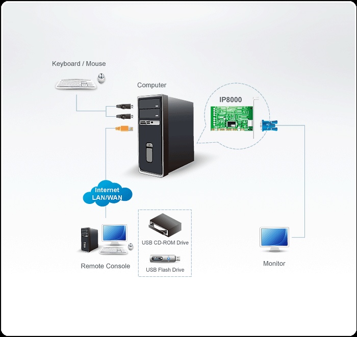 IP8000 je implementace PCI karty jako kontrolní jednotky, která nabízí "over-IP" vzdálený přístup a kontrolu serveru, v kterém je instalována. IP8000 umožňuje multi-platformní přístup a kontrolu serveru ze vzdálené lokace za použití standardního internetového prohlížeče nebo s pomocí Java aplikace pro Windows.