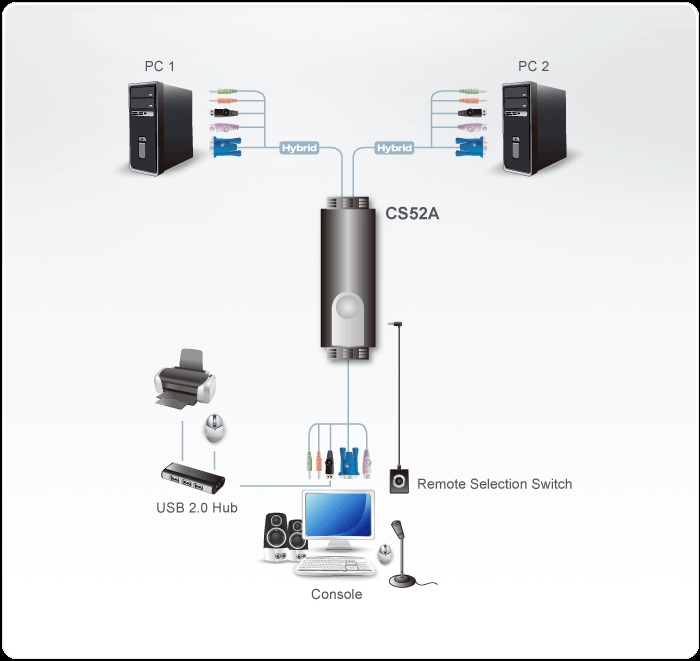 1x 2-Port Hybrid™ KVM Switch with Audio