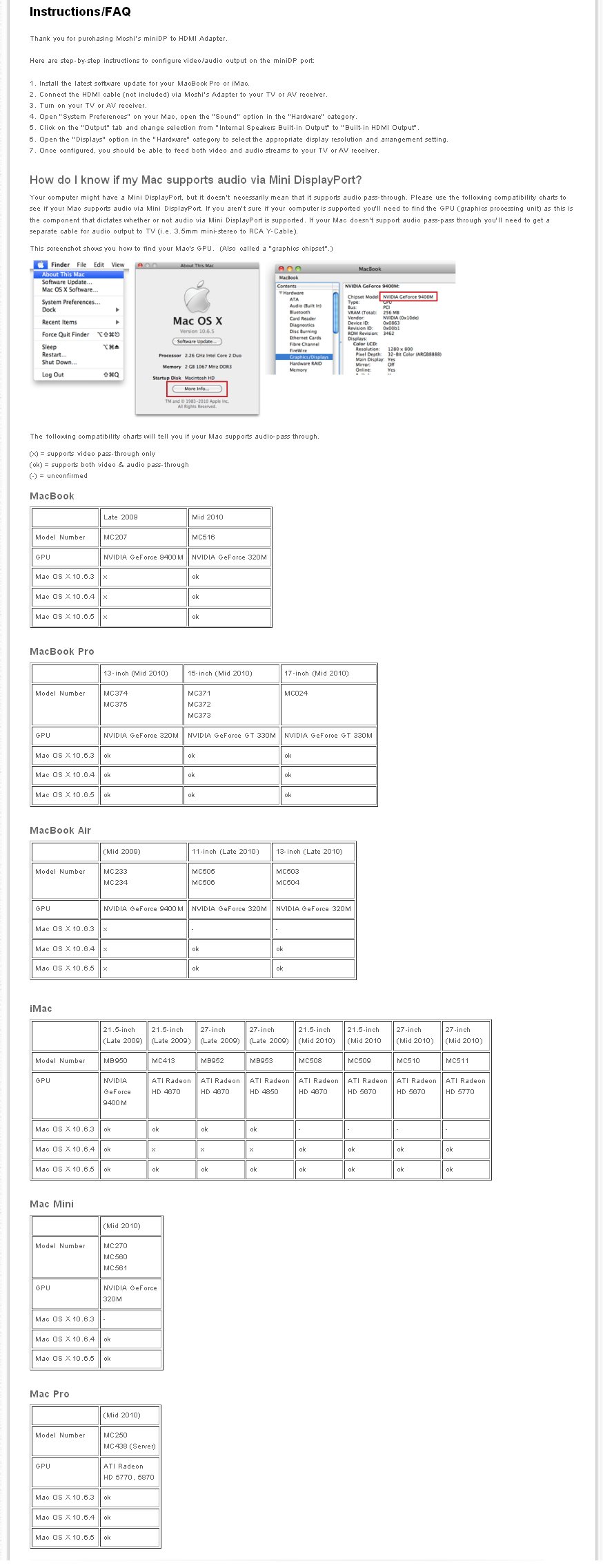 Tento adaptér umožňuje propojit novou generaci notebooků MacBook, MacBook Pro, or MacBook Air vybavených Mini DisplayPort výstupem s LCD nebo televizí.