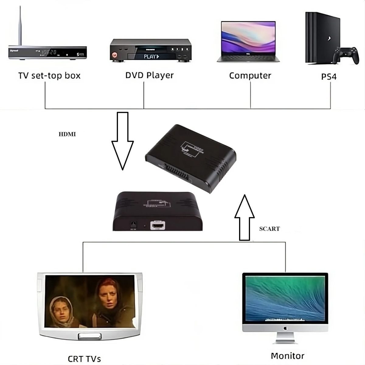 Umožní připojit SCART zařízení do HDMI televizoru. Obsahuje ve SCARTu analogové RGB signály. Jednoduché použití bez nastavování.