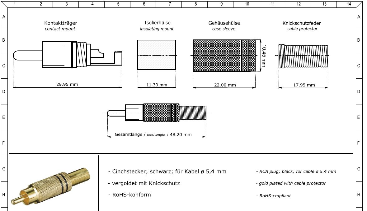 Konektor Cinch M zlacený, černý pruh