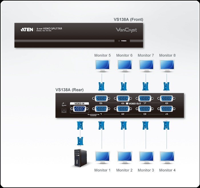 ATEN Video rozbočovač 1 PC - 8 VGA 450 Mhz