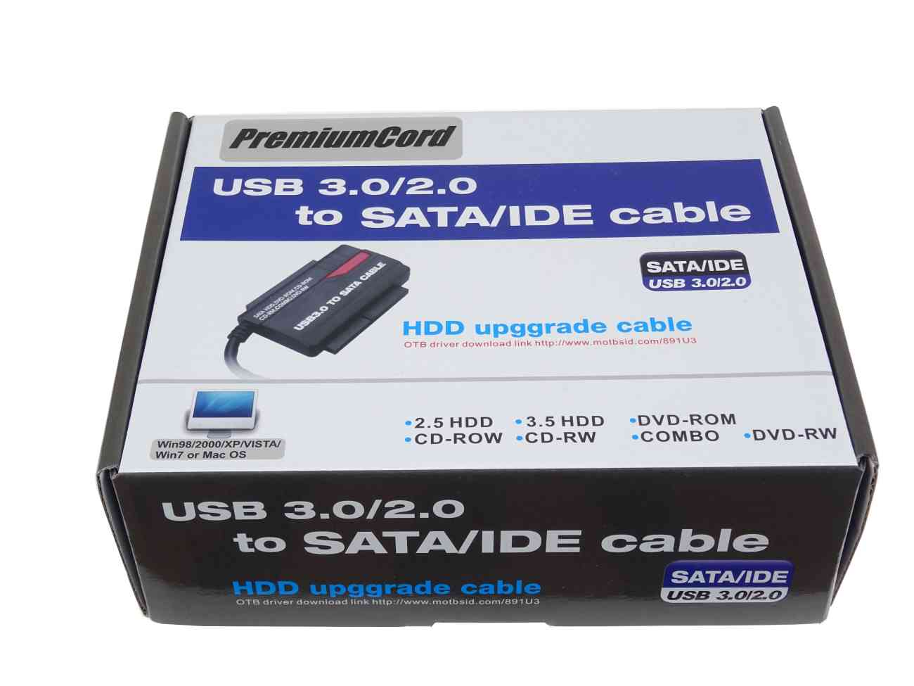 Pro připojení všech druhů SATA a IDE disků a mechanik přes USB3.0/USB2.0 rozhraní k počítači. Včetně napájecího adaptéru, který umožňuje napájet HDD.