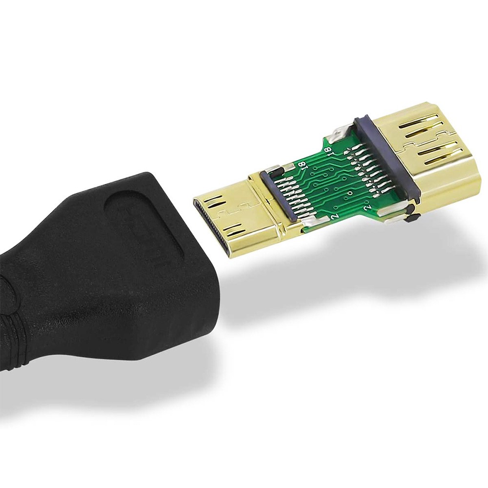 PremiumCord Flexi adaptér HDMI Typ A samice - mini HDMI Typ C samec pro ohebné zapojení, adaptér slouží k pružnému a ohebnému zapojení do zařízení s mini HDMI konektorem, konektory: HDMI typ A samice mini HDMI typ C samec