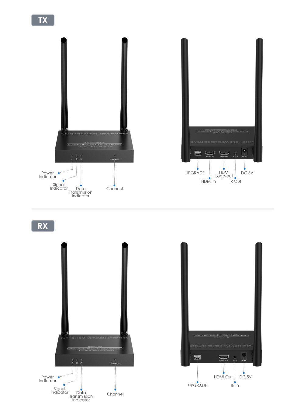 - Vysílač má lokální HDMI výstupní konektor pro lokální HDMI monitor