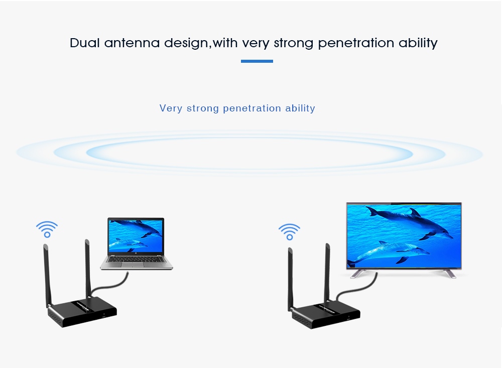 - Poporuje bezdrátový přenos rozlišení Full HD 1080p na vzdálenost až 50m