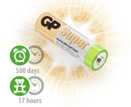 Baterie GP Super Alkaline LR6 (AA, tužka) jsou nenabíjecí alkalické baterie. Nejčastěji používají do přístrojů se středním a vyšším odběrem, jako například MD a CD přehrávače, svítilny, hračky, rozhlasové přijímače, diktafony, elektronické hry, dálkové ovladače.