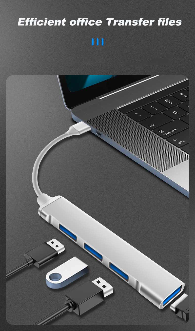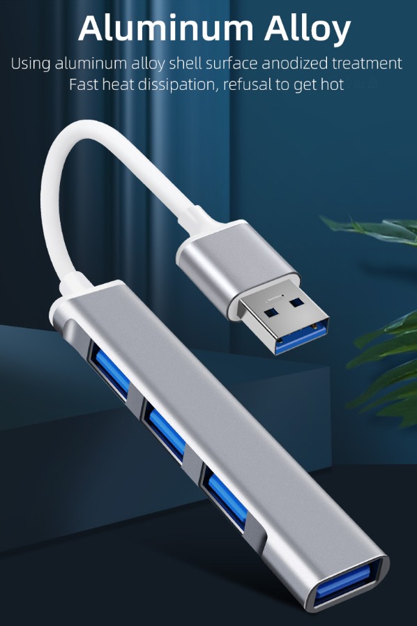 - Jeden port může pracovat rychlostí: SuperSpeed USB 3.2 Gen 1 (5Gbps), ostatní tři porty rychlostí High Speed USB 2.0 (480Mbps)