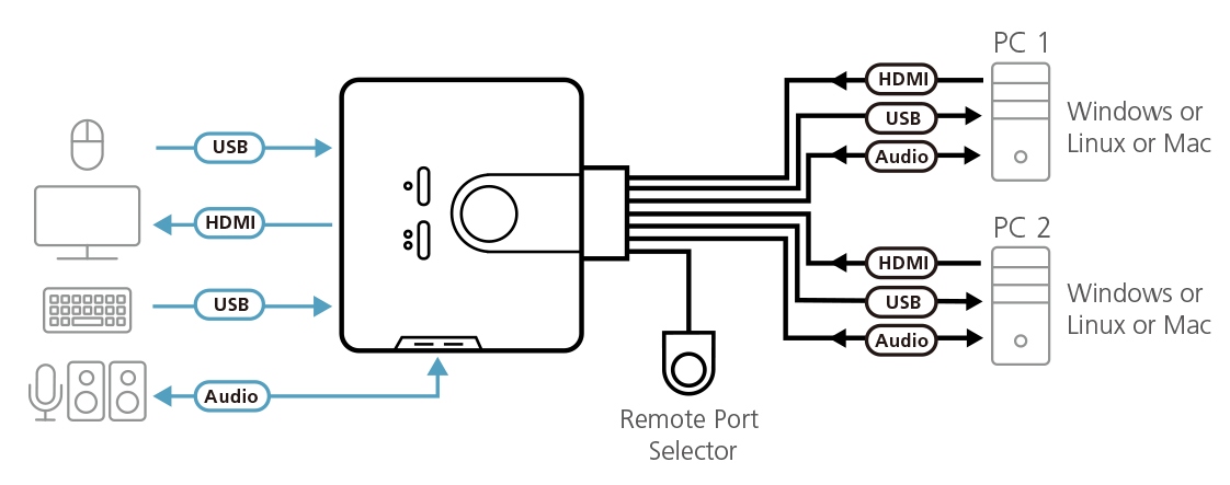 ATEN 2-port USB3.0 4K HDMI KVMP, audio