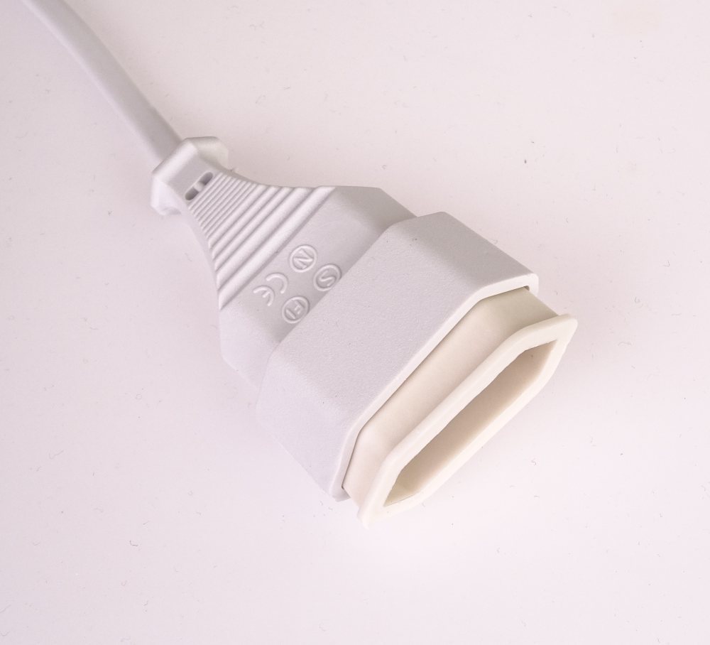 Do zásuvky je ve výrobě zasunuta ochraná vložka proti deformaci zásuvky, která se musí před použitím kabelu vytáhnout.