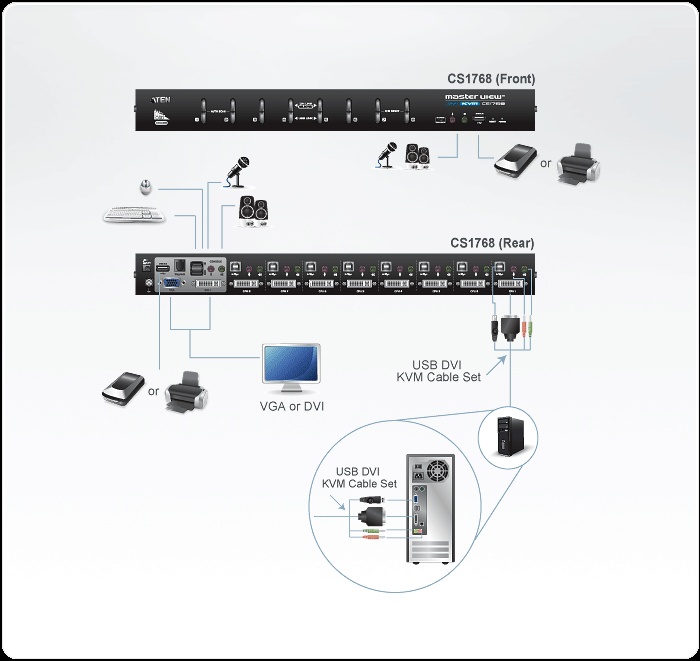 Umožňuje ovládat pomocí USB konzole (klávesnice + myš + DVI monitor) až 8 počítačů a dvě další USB 2.0 periferie. Zařízení má výstup na dva monitory (VGA a DVI-I), zařízení je navíc vybaveno technologií Video DynaSync pro optimalizaci rozlišení monitorů.