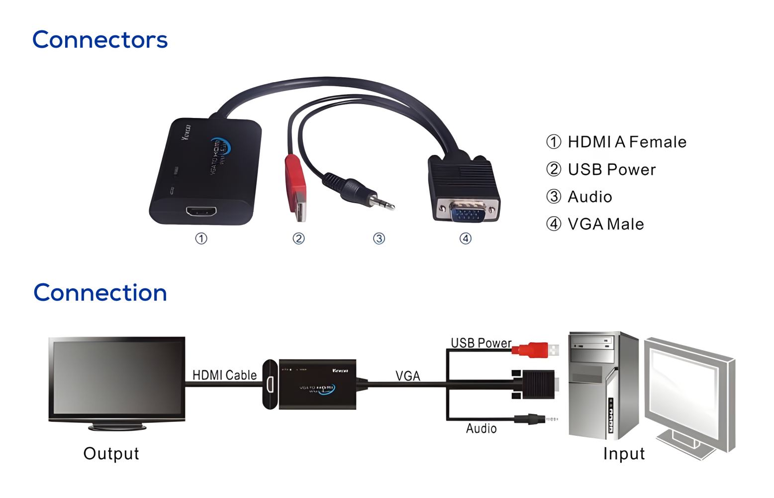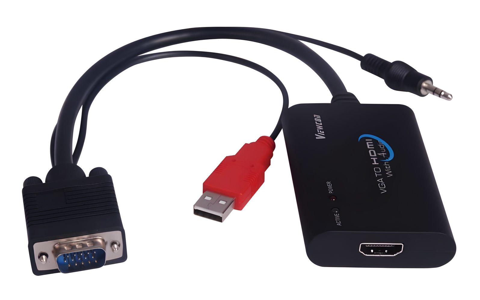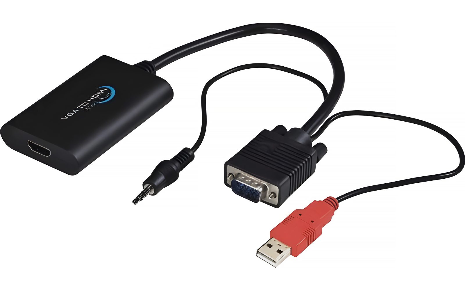 - Vstupy: VGA DB15HD male, AUDIO stereo jack 3,5mm male.