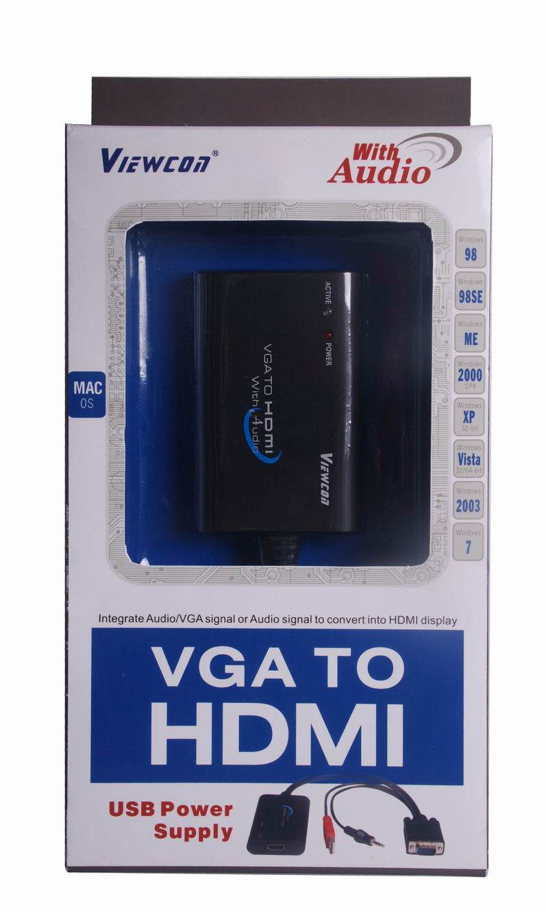 VGA+audio elektronický konvertor na rozhraní HDMI, převádí signál VGA a audio na digitální rozhraní HDMI pro LCD nebo TV