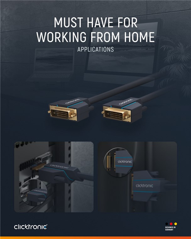 Kabel DVI pro digitální připojení LCD panelů k počítači. Standard DVI-D přenáší pouze digitální signál, lze s ním tedy propojit digitální výstup na grafické kartě a digitální LCD displej. Rozlišení 2560 x 1600 bodů při 60Hz, je vhodný pro FULL HD 1080p