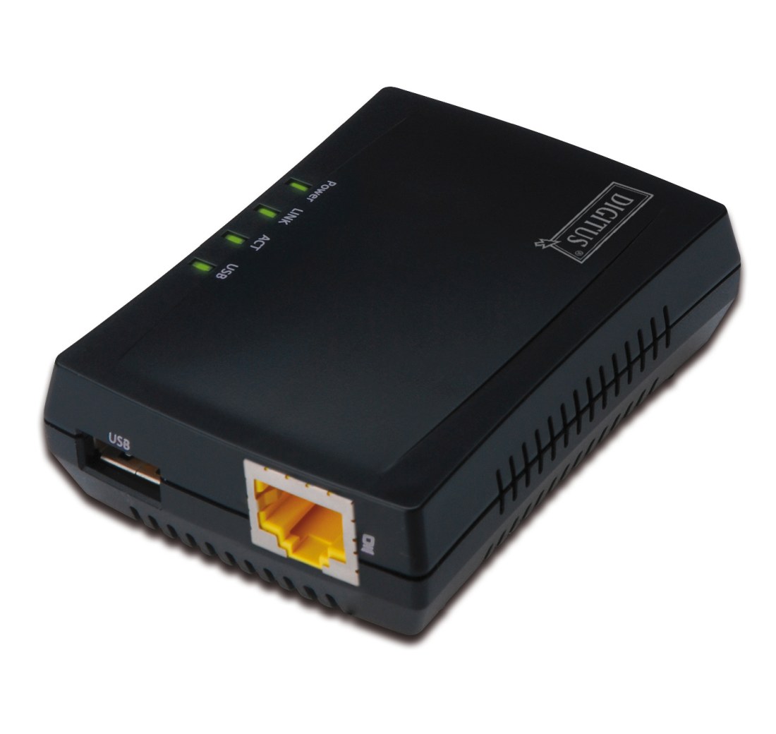 DIGITUS Ethernet print server, 1x USB 2.0 port, 1x LAN port