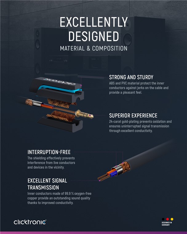 Kvalitní propojovací kabel s podporou precizního přenosu zvuku. Kabel je vyroben z příkladně čistého materiálu, nejmodernější technologií. Kabel je dvojitě stíněný. Kvalita kabelu je podpořena zárukou výrobce 10 let!