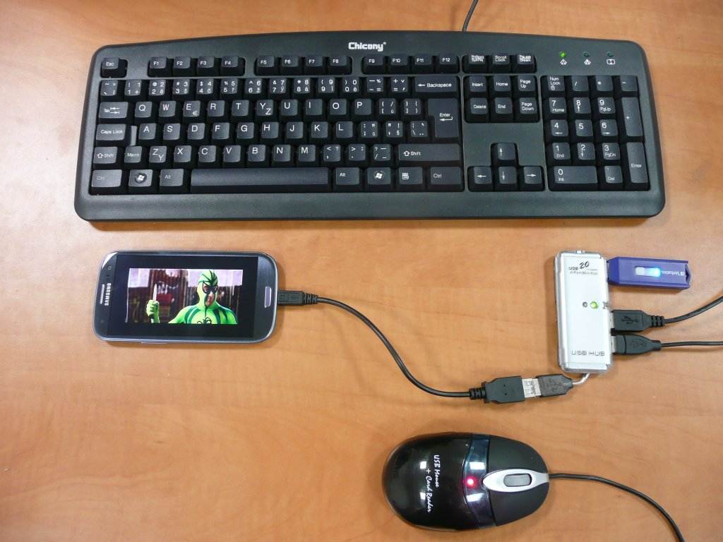Redukce umožní připojit k telefonu (tabletu), který podporuje funkci OTG, najednou přes USB HUB: klávesnici, myš, flashdisk. Vše je najednou v jeden okamžik funkční (máme otestováno viz přiložené foto "Příklad použití redukce").Testováno s mobilním telefonem SAMSUNG GALAXY S3
