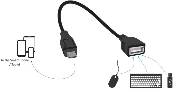- Redukce se může použít pro propojení mobilních telefonů, které nabízejí funkci host. Tato redukce umožňuje připojit k telefonu flash paměť nebo externí USB disk a kopírovat data mezi telefonem a externí pamětí.