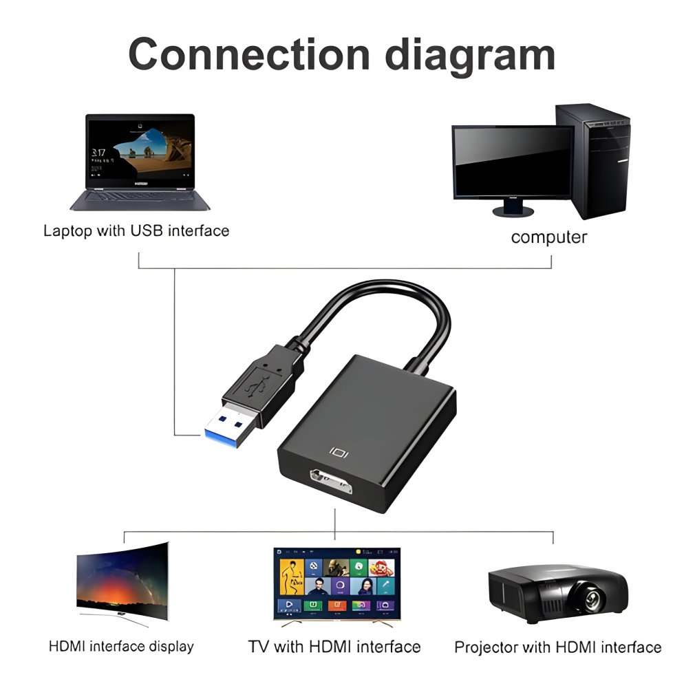 Tento adaptér umožní přidat další display k počítači nebo notebooku prostřednictvím USB 3.0 portu, výstup: HDMI Female, vstup : USB3.0, vytvoří druhou obrazovku, zobrazení v ve dvou modech: 1) rozšíření obrazu na dvě obrazovky 2) duplikování obrazu