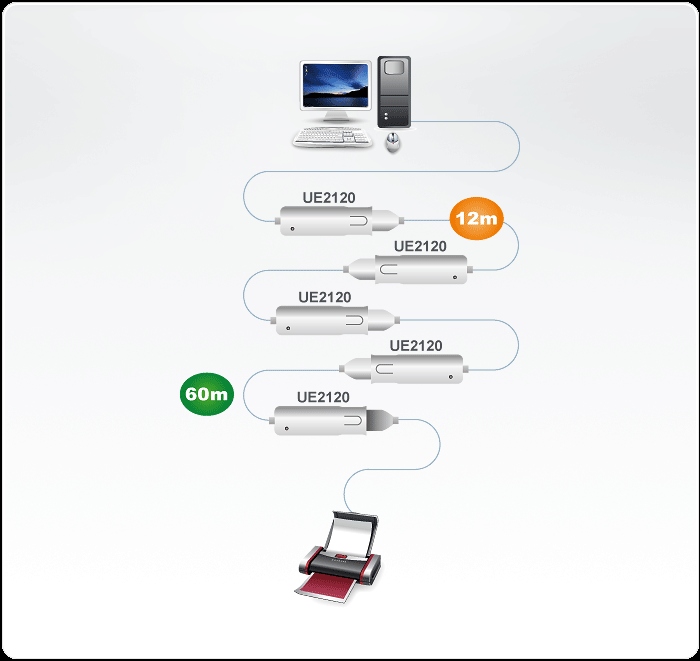 ATEN USB 2.0 aktivní prodlužka 12m se zámkem