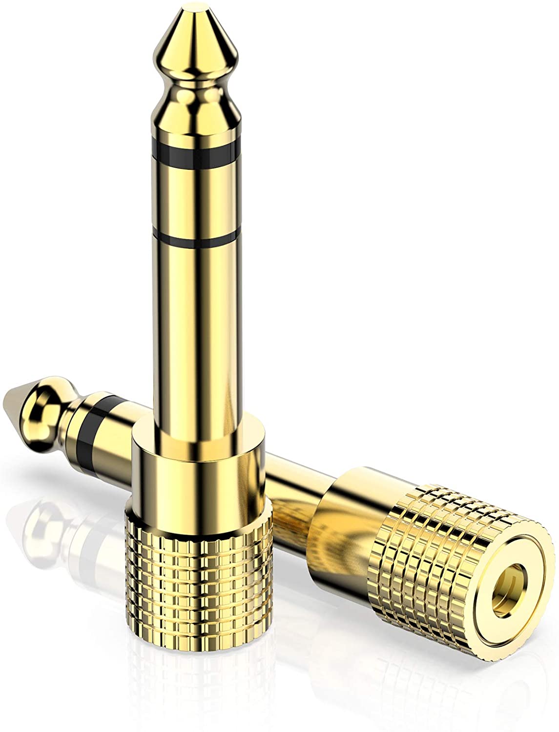 - 6,35 mm samec na 3,5 mm samice: pomocí jack adaptéru lze snadno připojit různé typy zařízení se standardními 3,5 mm zdířkami k 6,35 mm stereofonním audio zařízením.