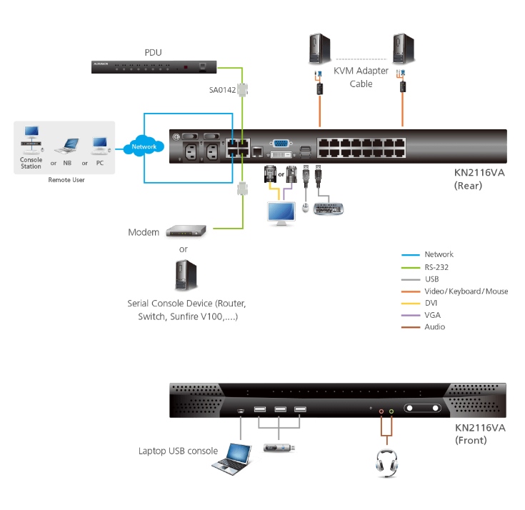 - kontrola až 16 počítačů / 256 počítačů v kaskádě*