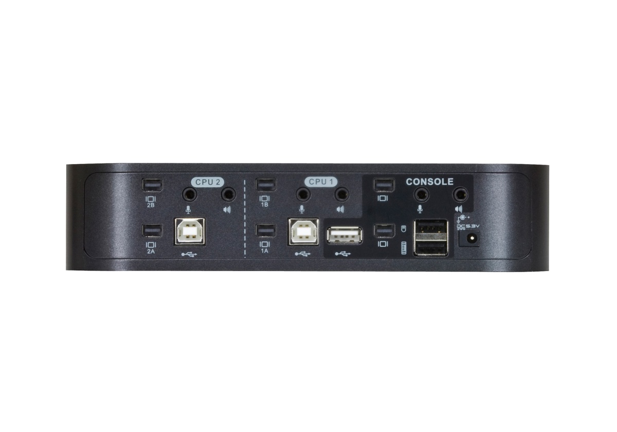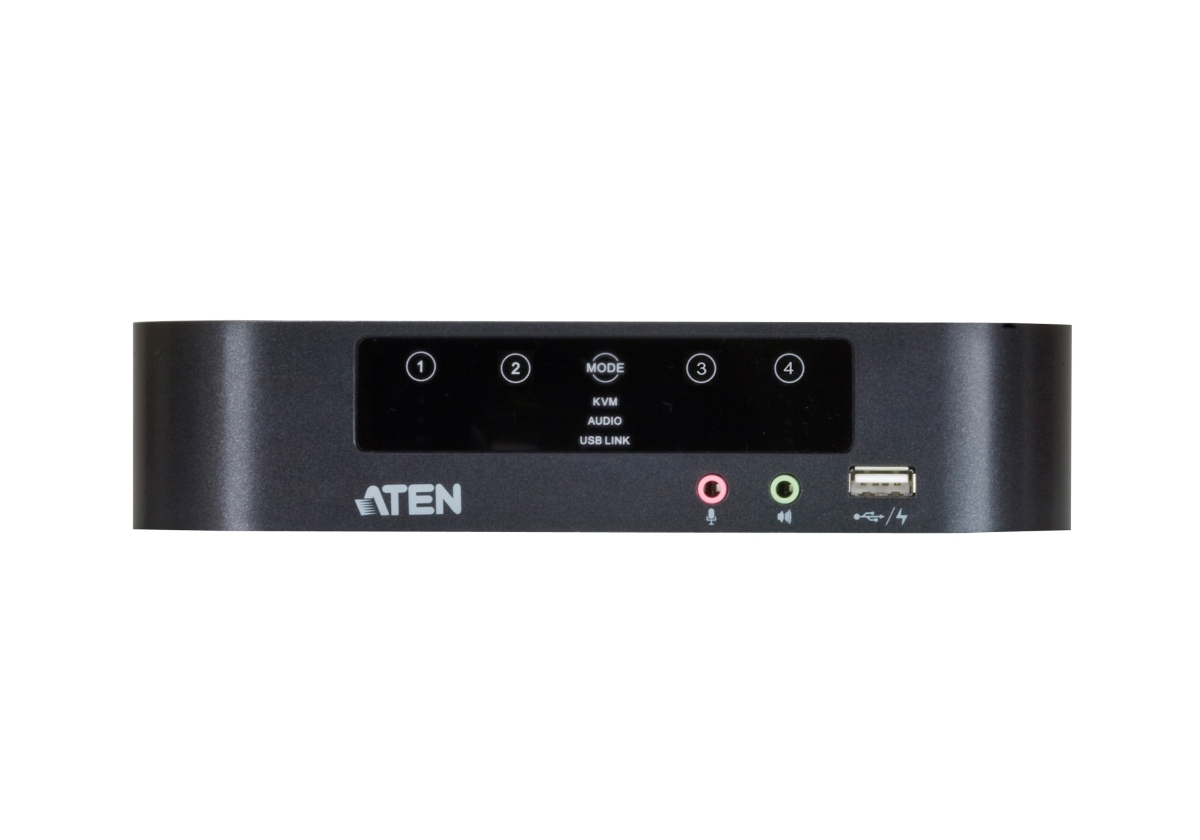 Přepínač má připojení pomocí DisplayPort kabelů, má integrovaný USB 2.0 2 portový HUB pro připojení dalších sdílených zařízení a 1 port USB na předním panelu pro nabíjení USB zařízení..