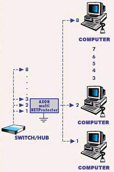 Přepěťová ochrana AXON MultiNET Protector 24 Rack 24x RJ45, chrání všechny
