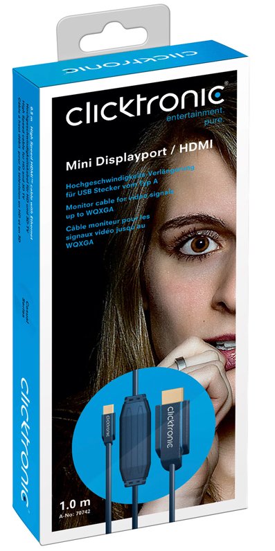 ClickTronic HQ OFC kabel mini DisplayPort - HDMI typ A, zlacené kon., 3D, M/M, 2m