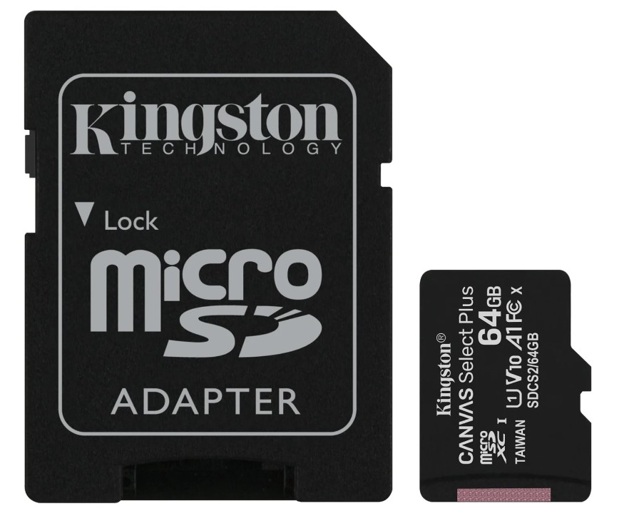 Kingston Canvas Select Plus microSDXC 64GB U1/V10/A1, čtení 100MB/s + SD adaptér